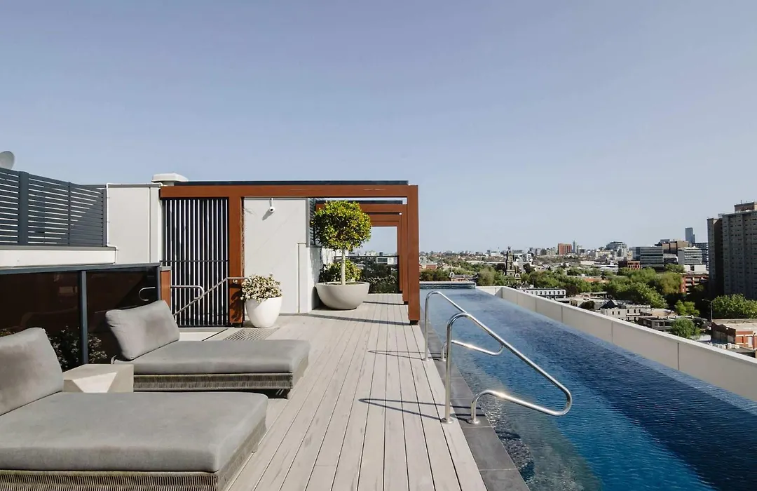 Abbotsford Abode With Pool Parking & Gym Apartment has an oven and a dishwasher at a fully-fitted kitchen for preparing meals. Abbotsford Abode With Pool Parking & Gym Apartment is in the immediate vicinity of the nearest bus stop Palmer Street/Johnston Street. Guests can relax on a patio.